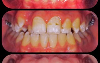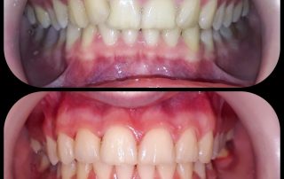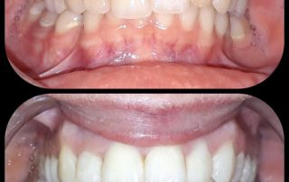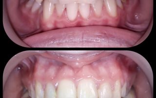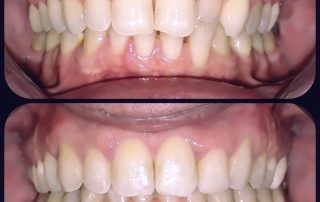 The patient came to our clinic to settle the issue of his frontal edentation that had been initially restored by an aesthetically and functionally inappropriate acrylic work.